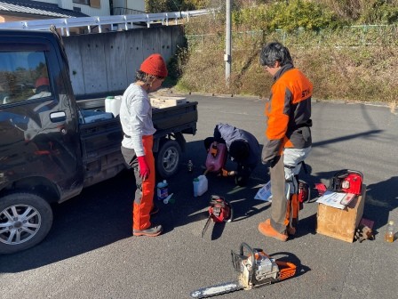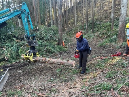 当該特別教育は、学科教育9時間に加え、実技講習9時間とされており、本日は実技講習のうち「チェンソーの操作」として2時間の講習を実施したものです。